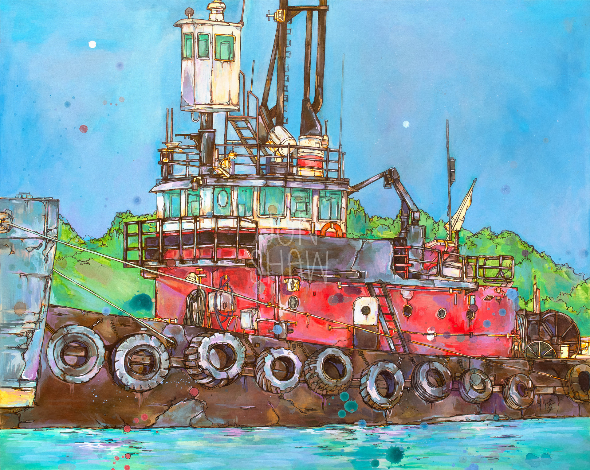 Ink and acrylic on canvas